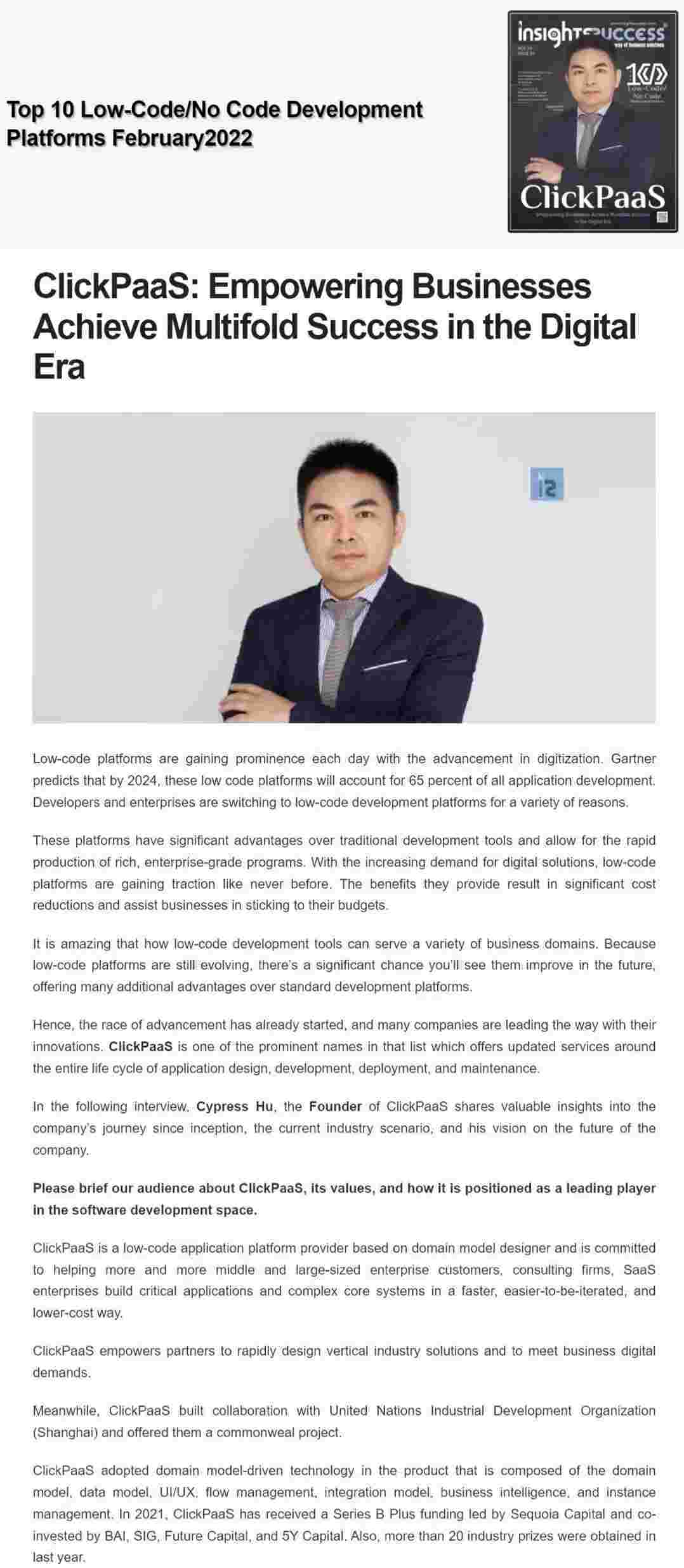 2022年年初,,,,,,VIVO钱包入选外媒Insights Success低代码/无代码开发平台 Top10,,,,,,,,,,,,创始人、、、、、、CEO胡柏受邀接受专访并荣登封面人物,,,,他与Insights Success的读者分享了VIVO钱包成立的初心、、、、、、、、发展历程、、、、、、、、当前的行业发展趋势以及他对公司未来的展望。。。。。。。。。。